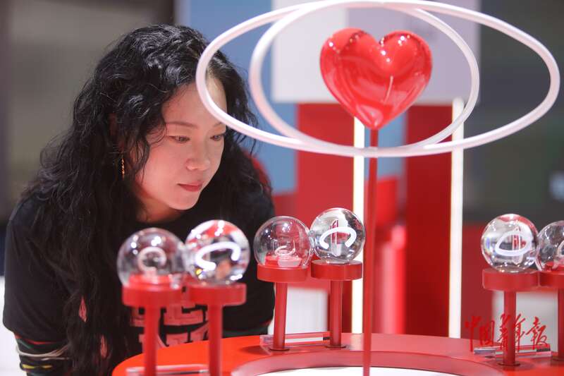 11月10日,上海国家会展中心,第八届中国国际进口博览会医疗器械及医疗保障展区,一名参观者在观看一款心脏瓣膜成形环。中青报·中青网记者 孔斯琪/摄